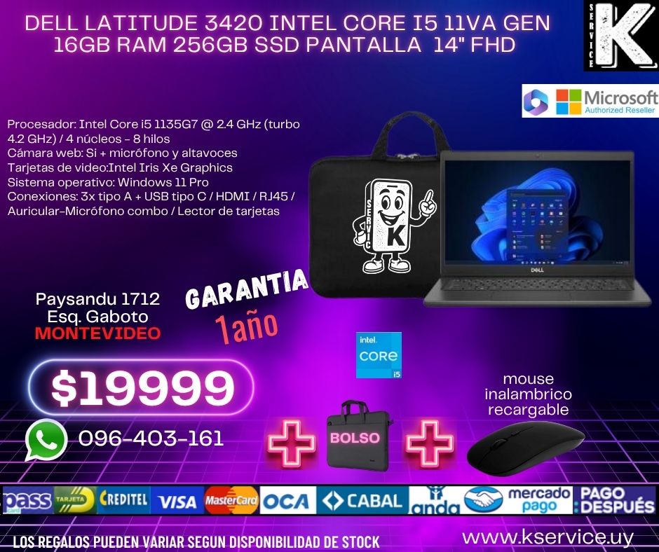dell latitude 3420 intel core i5 11va gen 16GB RAM 256GB SSD pantalla 14″ FHD
